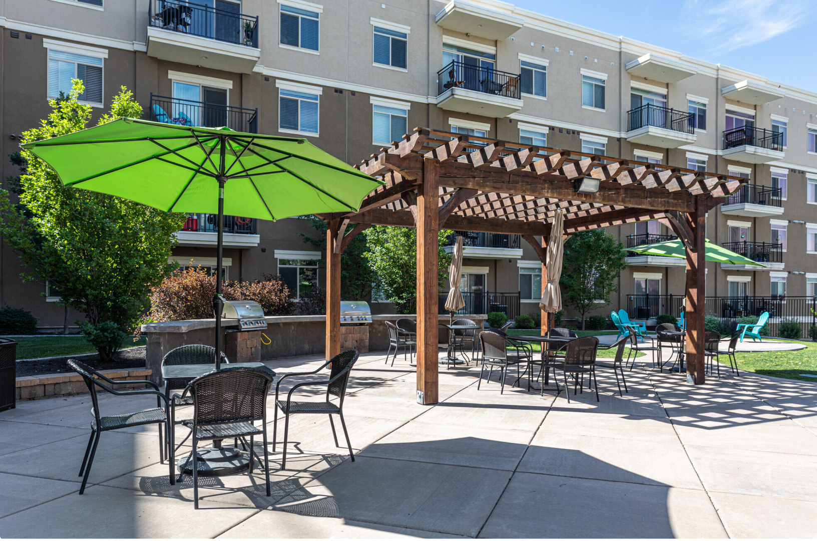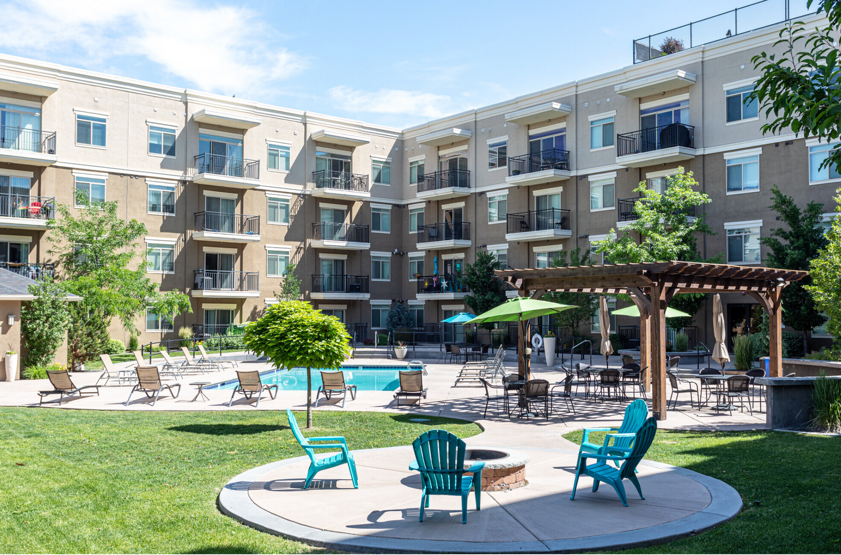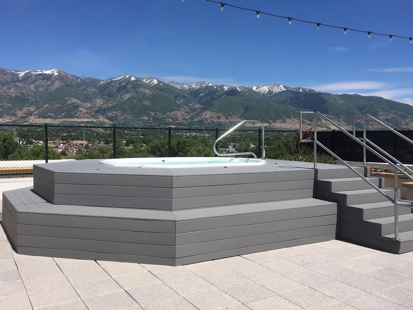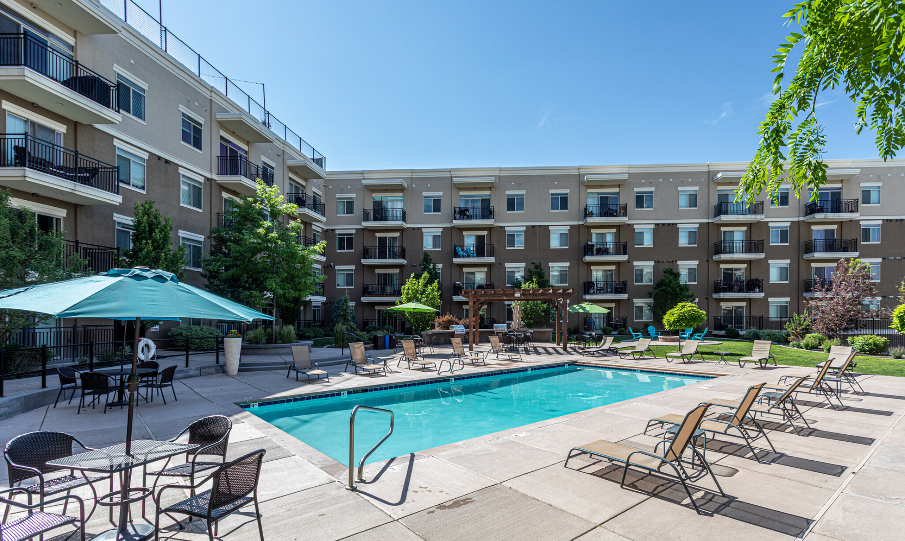 Our courtyard features a sparkling pool and in-ground spa (open year-round), a fire pit, and built-in BBQ grills for the best entertaining. The rooftop deck has stunning views of the mountains, the Great Salt Lake, and Antelope Island. The built-in BBQ grill and hot tub will complete your city-style rooftop experience.